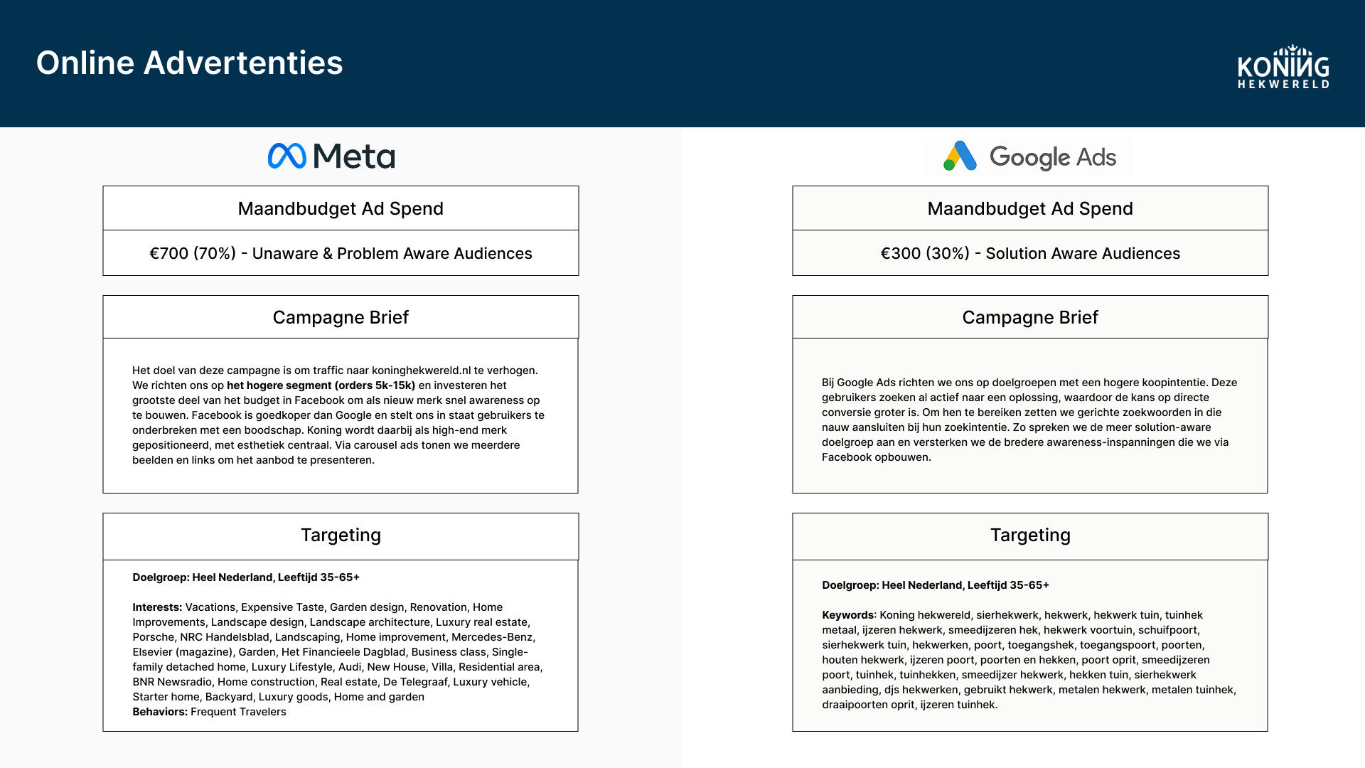 Founded in 2019, Koning Hekwereld is a family business specializing in custom gate solutions. They design, build, and supply everything from automatic sliding gates for residential properties to heavy-duty swing gates for industrial facilities, tailoring each solution to meet specific security, access, and aesthetic requirements.As a startup in a competitive market, Koning Hekwereld needed rapid growth but lacked internal digital marketing expertise. Without proven marketing channels generating consistent revenue, they brought me in to develop and execute their complete digital marketing strategy.
